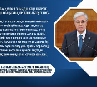 Мемлекет басшысы Қасым-Жомарт Тоқаев «Жасанды интеллект дәуіріндегі Қазақстан: өзекті мәселелер және оны түбегейлі цифрлық өзгерістер арқылы шешу» атты Қазақстан халқына Жолдауында осы ...Мемлекет басшысы: “Алатау қаласы еліміздің жаңа іскерлік және инновациялық орталығы болуға тиіс”