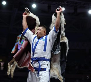 Астана қаласындағы Жақсылық Үшкемпіров атындағы Жекпе-жек сарайында қазақ күресінен өткен дәстүрлі XV республикалық «Қазақстан барысы – 2025» турнирінде Шымкент қаласының намысын қорғаған ...“Қазақстан барысы–2025”: Шымкенттік балуан чемпион атанды